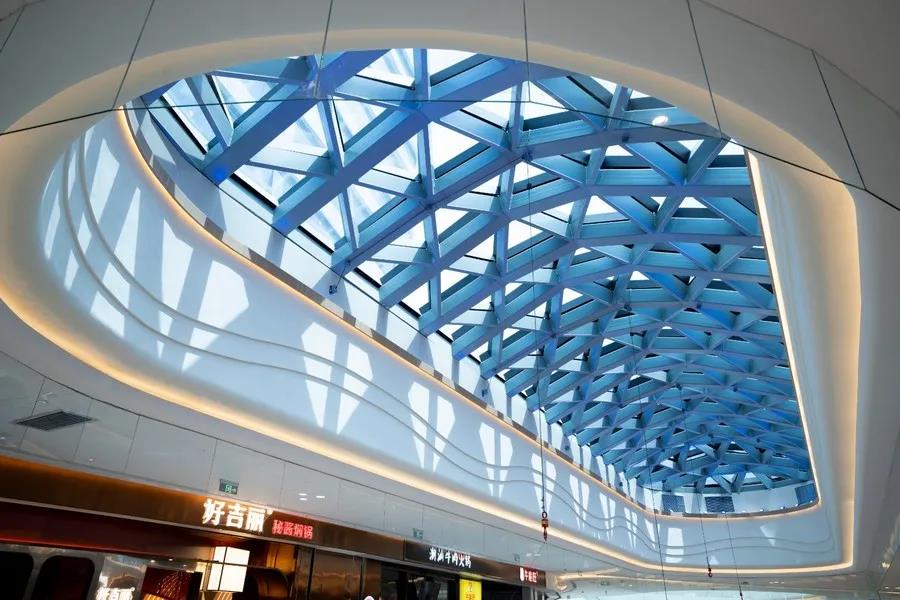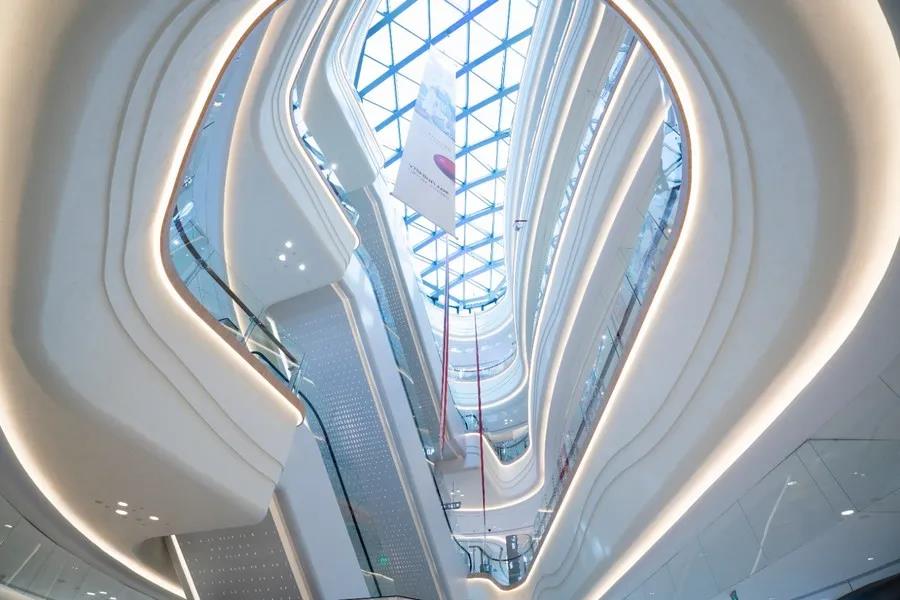 貴港市客世界商業文化廣場位于貴港市港北區,總建筑面積約13萬平方米。貴港市是一座具有兩千多年歷史的古郡新城,也是一座充滿生機的新興內河港口城市,因城里多種植荷花而別稱荷城,貴港市客世界商業文化廣場設計主題便以荷葉為概念元素,采用波紋流線,既展現荷葉的韻律形態,又蘊藏荷女采蓮羅裙飄揚的婀娜,打造人文與建筑、商業與藝術融合的多元主題商業,引領貴港購物、娛樂、社交、休閑潮流新前沿。該設計作品此前已獲得2020中國建筑裝飾金鷹設計大賽金獎。