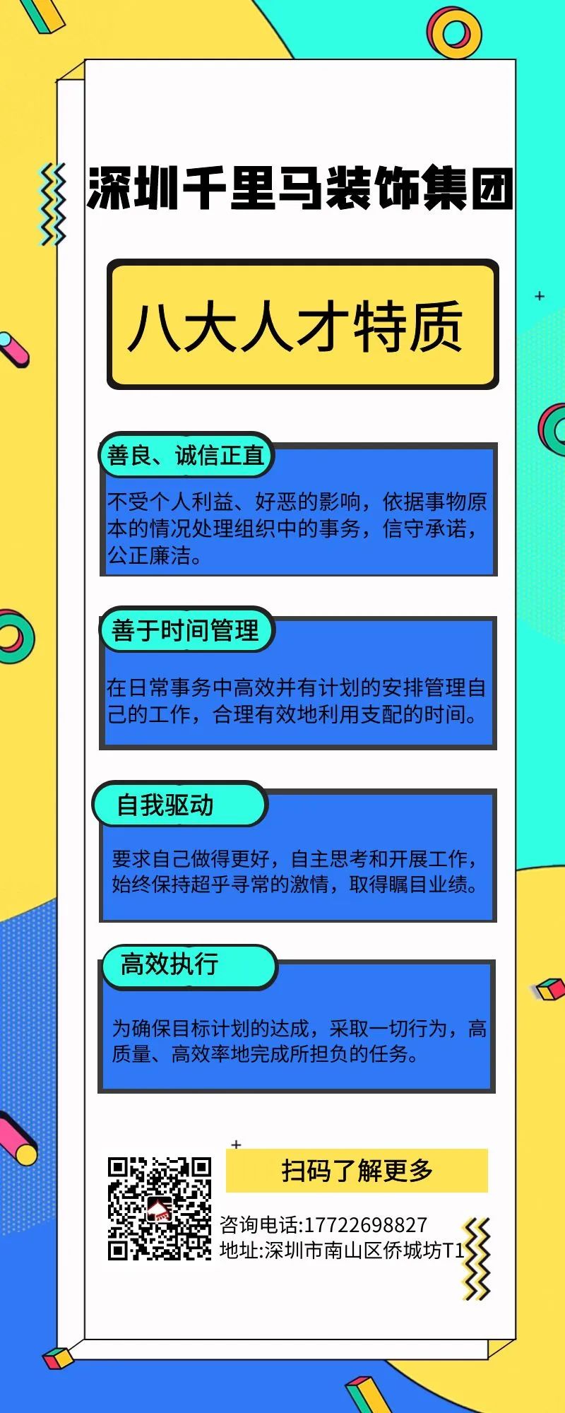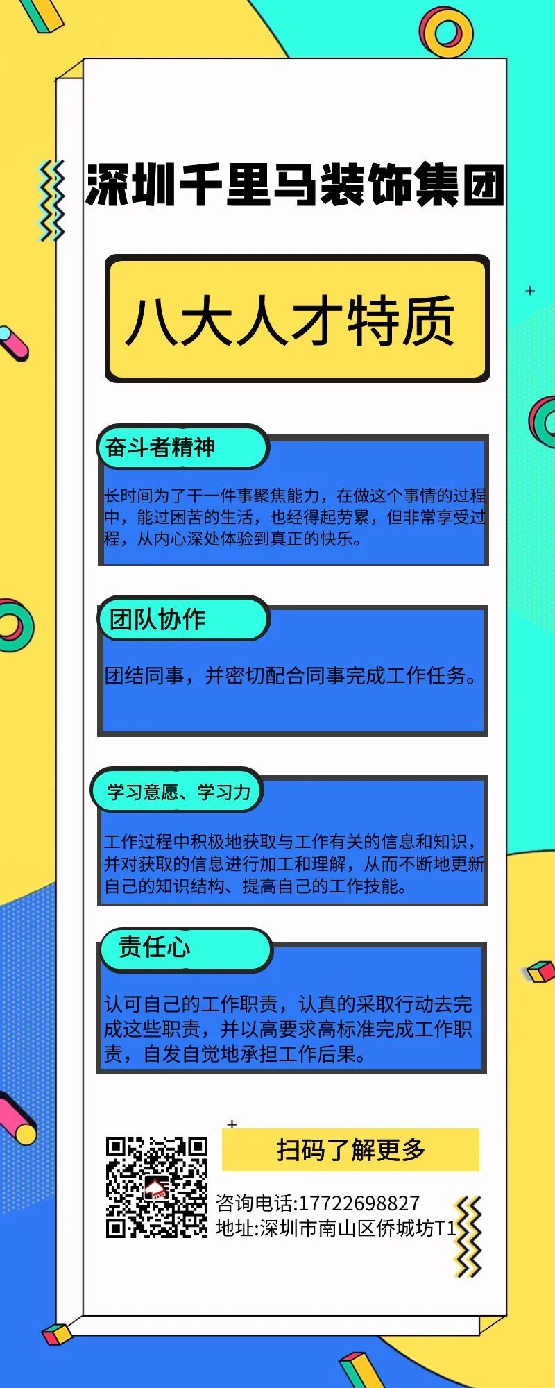深圳千里馬裝飾集團(tuán)有限公司成立于2010年,總部位于中國深圳,注冊資金1億元,目前員工人數(shù)400余人,年營業(yè)額超10億元,是中國建筑裝飾行業(yè)百強企業(yè),經(jīng)過10余年的發(fā)展,形成了以建筑裝飾產(chǎn)業(yè)為主體的專業(yè)化自營集團(tuán)公司。近年合作單位主要有中建科工、騰訊科技、中海地產(chǎn)、越秀集團(tuán)、鴻榮源集團(tuán)、恒裕集團(tuán)、萬科城市管理公司、金地集團(tuán)等世界500強企業(yè)、央企國企和行業(yè)巨頭。