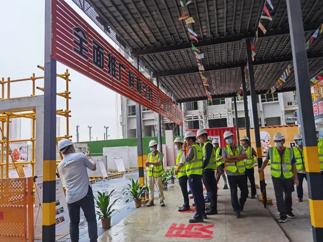 8月13日,越秀地產集團及區域公司在我司承建的越秀星匯瀚府項目20-23棟二次裝修項目上舉行了安全文明質量標桿工地觀摩活動。出席觀摩會的主要領導有越秀地產集團副總經理王榮濤、越秀地產灣西區域總經理陸文軍、越秀地產工管部總經理孟慶恩、越秀地產安監部總經理凌石等一行人、總包融興建設集團韋新丹董事長,千里馬公司董事長李向東、營銷總監時玉香、項目經理李永生陪同參會。