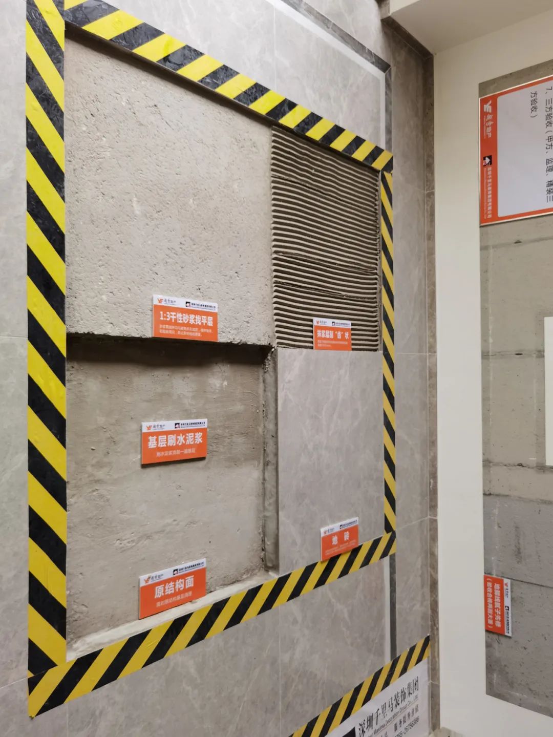 該項目重難點主要體現在以下幾個方面:1、衛生間和陽臺地面瓷磚采用濕貼鋪法,能有效地防止滲漏隱患,項目部針對瓷磚濕貼對工人進行了專門的技術交底,嚴格按照工序與質量要求進行施工。2、三邊兩線工藝,在涂料施工前嚴格按照三邊兩線工藝,門窗邊、柜體邊、開關面板線盒邊、門套線、踢腳線先進行膩子找平施工完成驗收后再開始大面膩子施工;按照甲方高標準要求,本項目開關面板及門套線在乳膠漆完成面漆后再安裝,保留自然縫,呈現較好的觀感質量。3、空調風口百葉采用細邊框,項目部與甲方進行技術溝通,優化了空調百葉的安裝方式,視覺上隱藏了螺絲,大大提升了觀感質量,最終得到越秀地產集團的一致好評和認可。