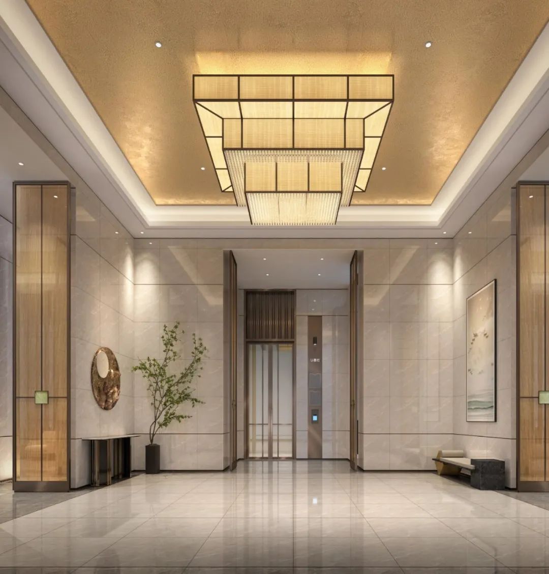 入戶大堂打造空間秩序和儀式感,設(shè)計(jì)師通過對光影的創(chuàng)造引入,呈現(xiàn)浩然之氣,全新的藝術(shù)審美給住戶帶來更多的視覺享受。將景觀融入室內(nèi),強(qiáng)調(diào)室內(nèi)外互動(dòng)意境,讓人充分體驗(yàn)到室內(nèi)空間與自然環(huán)境的融合。