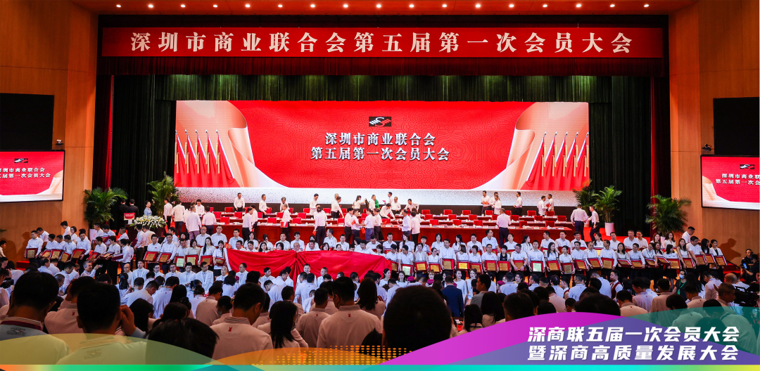 紅色基因、薪火相傳。近日,深圳市商業聯合會五屆一次會員大會暨深商高質量發展大會在深圳市民中心大禮堂隆重召開。會上,舉行了天安門廣場建黨百年慶典紅旗第021號捐贈儀式,廣東省唯一贈送的天安門廣場百年慶典紅旗——第021號紅旗永久落戶深商服務中心。