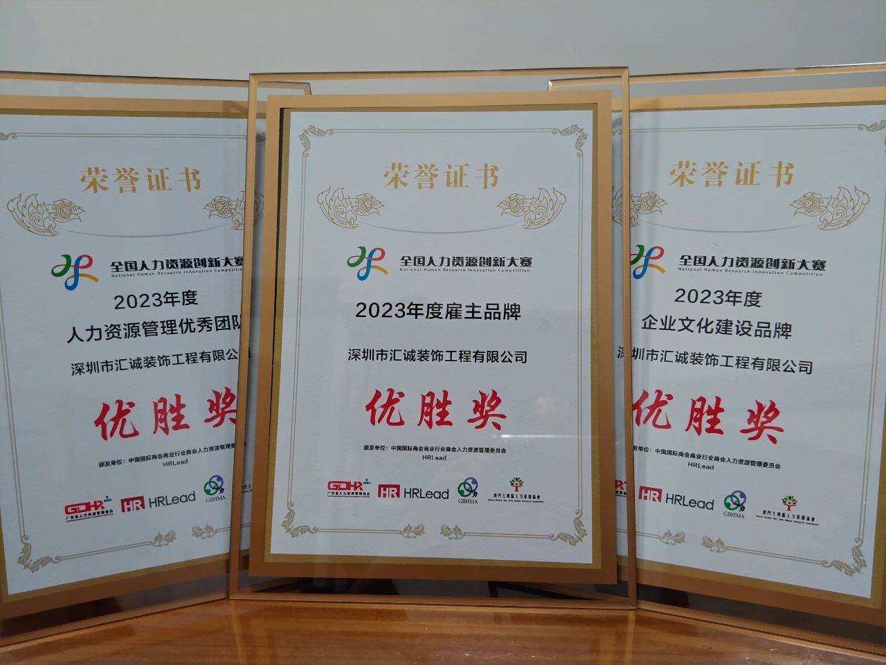 近日,2023第三屆全國(guó)人力資源創(chuàng)新大賽落下帷幕。深圳市匯誠(chéng)裝飾工程有限公司獲得了“2023年度人力資源管理優(yōu)秀團(tuán)隊(duì)”、“2023年度雇主品牌”、“2023年度企業(yè)文化建設(shè)品牌”三項(xiàng)優(yōu)勝獎(jiǎng),成為本次大賽人力資源管理品牌名企榜獲獎(jiǎng)最多的企業(yè)。