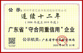建藝集團:連續十二年榮獲廣東省“守合同重信用”企業稱號