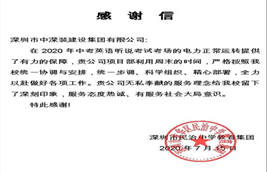近日,深圳市中深裝建設集團有限公司(以下稱“中深裝”)收到來自深圳市龍華區民治中學的感謝信。信中,校方對中深裝承建并已竣工的民治中學配電房改造項目為教學考試所需的電力正常運轉提供有力保障表示感謝。