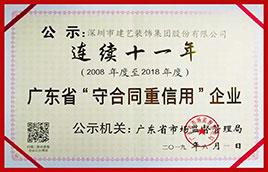 建藝集團:連續11年榮獲廣東省“守合同重信用”企業稱號