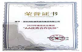 洲際裝飾集團:榮獲"2020年度佳兆業集團AA優質合作伙伴”