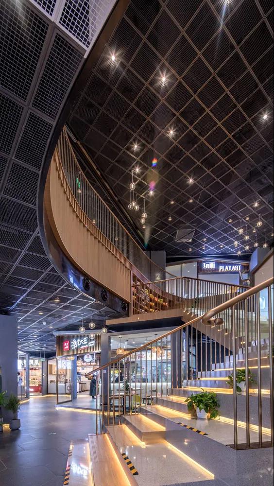 商業(yè)入口的設(shè)計(jì)更是整個(gè)項(xiàng)目的吸睛之處,天花的造型向外延伸,以此模糊室內(nèi)外的界限,天花的造型提取于一棵枝繁葉茂的大樹(shù)向四周生長(zhǎng)蔓延。