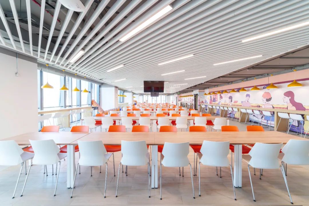 辦公室墻面采用多彩噴繪膜,結合今日頭條公司的企業文化,彰顯創新科技綠色建筑的人文關懷;地面采用膠地板鋪設,會議室等采用降噪的系統玻璃隔斷,給人一種簡潔、高雅、寧靜的感覺。
