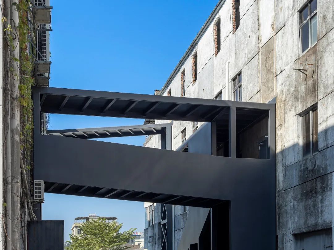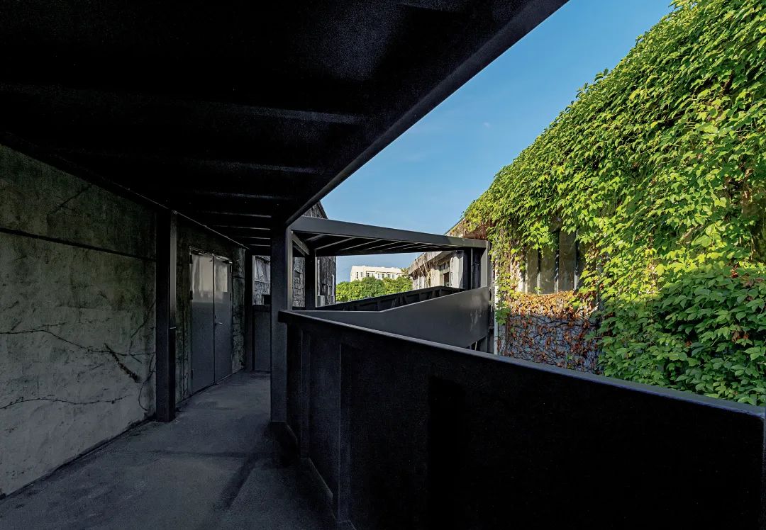 曾經主街路邊停放的車輛已經被重新規劃,停留在園區的西側。這讓整個園區有了更多供游客步行使用的公共空間。連廊系統從主街延伸向后側街道,在提供公共空間指引的同時,也為部分舊廠房空間提供了各樓層所需要的疏散通道。