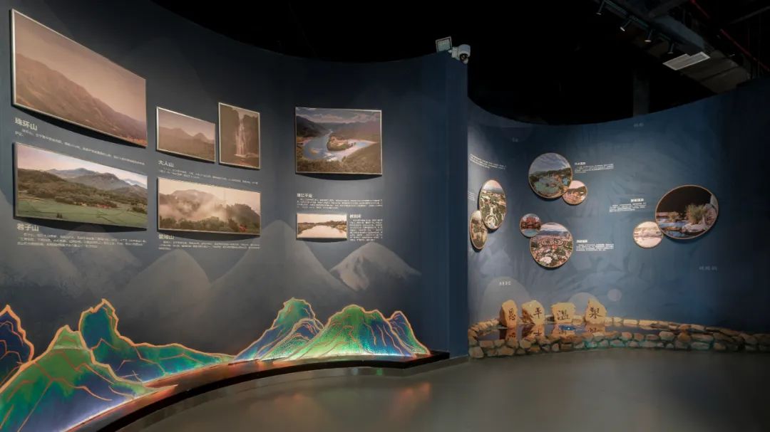 本展區(qū)展示恩平得天獨(dú)厚的自然資源,與其孕育出的厚重文明。山明水秀單元,以藝術(shù)畫(huà)的手法展示恩平的山水,結(jié)合圖文展板,詳細(xì)介紹君子山、大人山等內(nèi)容。場(chǎng)景復(fù)原恩平溫泉,墻面采用水珠背景,展示溫泉具有豐富礦物質(zhì)元素和微量元素,圓形展板展示熱水溫泉、黑泥溫泉等詳細(xì)內(nèi)容。史前遺存單元,復(fù)原恩平史前生活場(chǎng)景,結(jié)合圖文展板,出土文物等資料,展示三官山遺址、白虎頭嶺遺址等內(nèi)容,展示史前恩平人的生活場(chǎng)景。為了讓觀眾更直觀了解各時(shí)期的恩平歷史,展區(qū)按照秦朝至民國(guó)時(shí)期13個(gè)歷史時(shí)期,在LED大屏幕上設(shè)置13個(gè)屏幕觸點(diǎn),觀眾只要點(diǎn)擊相應(yīng)的觸點(diǎn),就會(huì)彈出文字內(nèi)容,既創(chuàng)新了展示方式,又增加了觀展樂(lè)趣。