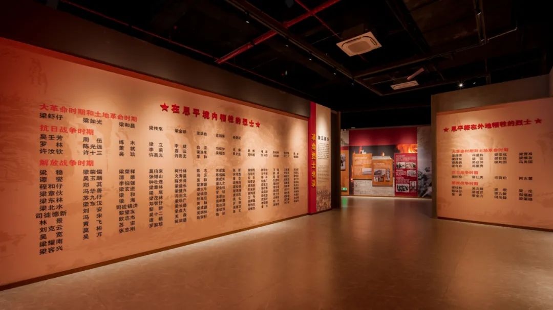 進(jìn)入序廳,“紅色恩平”四個(gè)大字赫然入目,右側(cè)墻面鐫刻紅色大字“緬懷革命先烈,傳承革命基因”,序廳整體設(shè)計(jì)簡(jiǎn)潔大氣,雄渾壯觀。