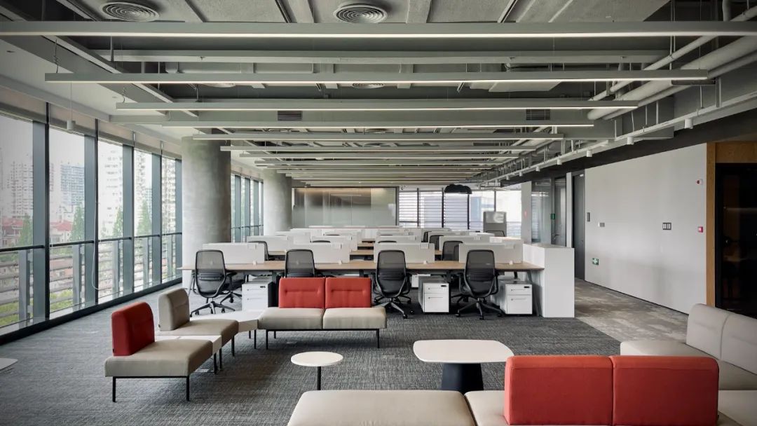 建議用加工地板取代稀釋混凝土、輕質混凝土進行回填,減輕樓板承重,方便改動;反復研討技術多次實驗,采用雙層龍骨夾石膏板、兩側再鋪巖棉,雙層隔音超白玻隔斷,隔音板到天花頂不留一點縫隙等措施,隔音降噪效果遠超行業標準;優化供應商,精選品質燈具,從外觀、照度、舒適度三個維度深化設計,使整個辦公樓呈現統一柔和照明效果。
