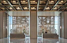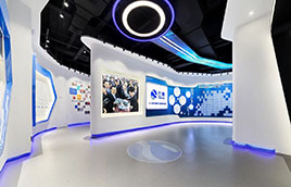 本案的概念設(shè)計就是將神秘、多樣且擁有極度包容性的海洋文化與云洲智能公司企業(yè)文化中的探索精神相結(jié)合。再用現(xiàn)代化設(shè)計語言、流線型工藝,打造出靈動且科技感十足的視覺體驗。首層大堂以流線藝術(shù)造型為視覺主調(diào),在用色上大面積的優(yōu)雅白中嵌著靜謐的海洋藍,氣勢恢宏且充滿張力的柱體,屹立在在大堂中央并貫穿了建筑的一二層,既延伸了原建筑設(shè)計的結(jié)構(gòu),也相得益彰的凸顯了室內(nèi)設(shè)計的靈魂。