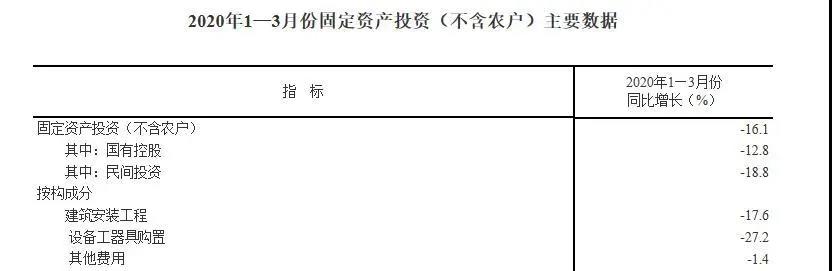 一季度,全國固定資產投資(不含農戶)84145億元,同比下降16.1%,降幅比1-2月份收窄8.4個百分點。其中,基礎設施投資下降19.7%,建筑安裝工程投資同比下降17.6 %。