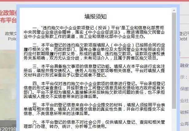 違約拖欠中小企業(yè)款項(xiàng)登記(投訴)平臺(tái),主要受理國(guó)家機(jī)關(guān)、事業(yè)單位和大型企業(yè)違約拖欠中小企業(yè)貨物、工程、服務(wù)等款項(xiàng)的登記(投訴):
