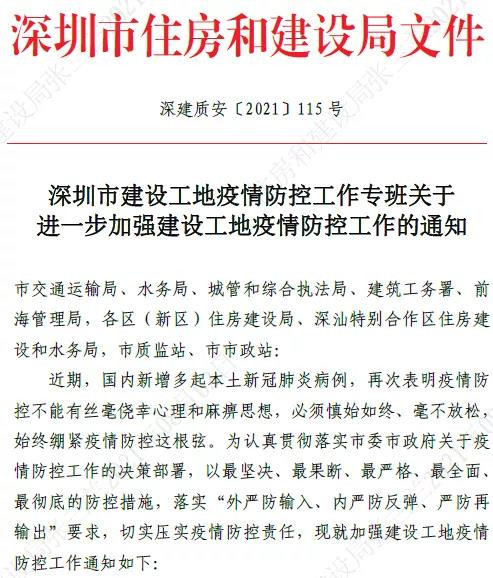 深圳市建設(shè)工地疫情防控工作專班發(fā)布了關(guān)于進(jìn)一步加強(qiáng)建設(shè)工地疫情防控工作的通知。