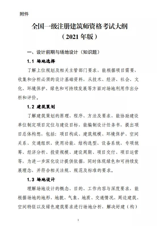 《全國一級注冊建筑師資格考試大綱(2021年版)》
