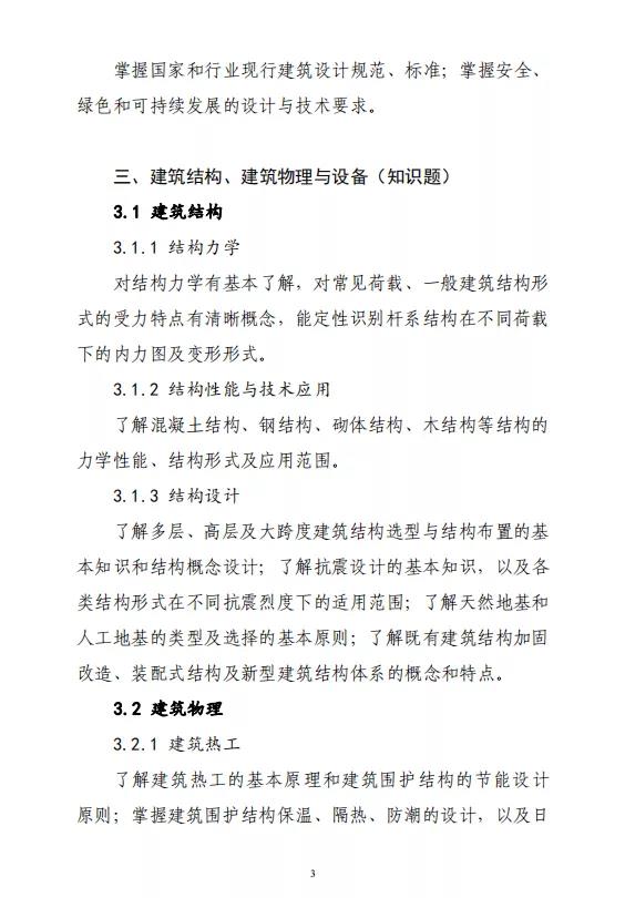 3.舊大綱中《設(shè)計(jì)前期與場地設(shè)計(jì)》《場地 設(shè)計(jì)》《建筑結(jié)構(gòu)》《建筑物理與建筑設(shè)備》《建筑技術(shù)設(shè)計(jì)》2024 年起不再進(jìn)行舊大綱上述5個(gè)科目的考試。