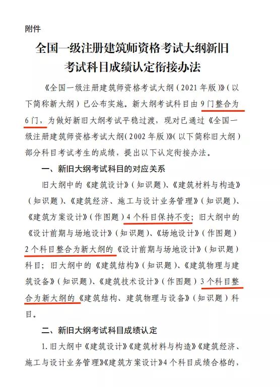 《全國一級注冊建筑師資格考試大綱新舊考試科目成績認(rèn)定銜接辦法》