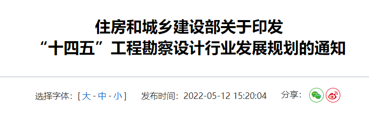 5月12日,住房和城鄉建設部印發《“十四五”工程勘察設計行業發展規劃》明確,“十四五”時期,工程勘察設計行業穩步發展,規模持續擴大,效益顯著提高,勘察設計在工程建設中的引領作用進一步凸顯。勘察設計相關法規制度不斷完善,市場環境進一步優化,誠信體系初步建立,勘察設計質量得到充分保障。工程勘察設計行業綠色化、工業化、數字化轉型全面提速,技術管理創新和綜合服務能力不斷增強,標準化、集成化水平進一步提升,持續助力建筑業高質量發展。