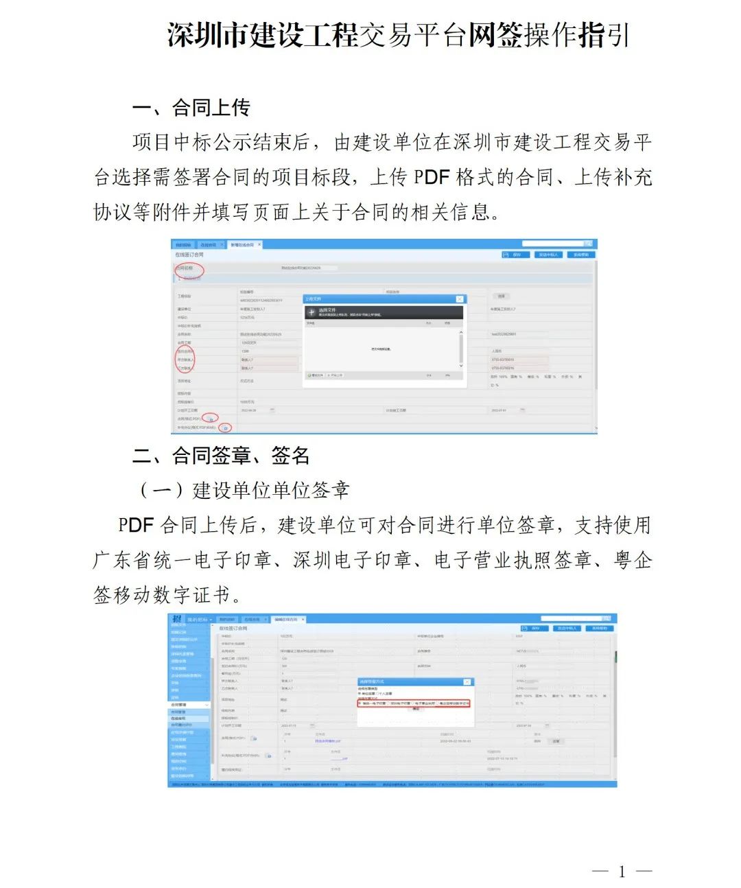 1.深圳市建設(shè)工程合同網(wǎng)簽電子簽名印章辦理指南