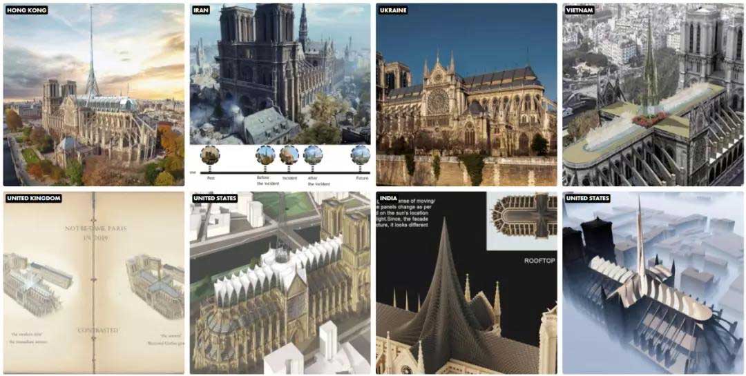 正如競賽主旨所說的那樣,“數百年歷史的大教堂已經失去了整個屋頂、尖頂,并被火焰嚴重破壞。巴黎圣母院大教堂不僅僅是一座建筑。它是一個象征,一系列回憶,見證了歷史,以及我們都受到影響的紀念碑。這種集體理解現在向我們提出了最獨特的問題:我們應從哪里開始?我們是否完全按原樣重建結構,或者我們是否要尋找新的形式代表我們的共同經歷?如果是后者,這種表現形式會是什么樣子,感覺像或者表現得像?”