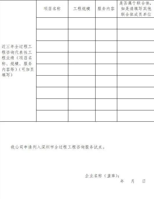 一、深圳市勘察設(shè)計(jì)、工程監(jiān)理、造價(jià)咨詢等企業(yè)具有相應(yīng)專業(yè)甲級(jí)資質(zhì),具有大型工程項(xiàng)目工程咨詢服務(wù)業(yè)績(jī),可申請(qǐng)為全過程工程咨詢?cè)圏c(diǎn)企業(yè)。請(qǐng)申請(qǐng)企業(yè)填寫《全過程工程咨詢服務(wù)試點(diǎn)企業(yè)申請(qǐng)表》(附件1),并附近三年全過程工程咨詢代表性項(xiàng)目合同復(fù)印件(加蓋公章)。