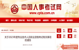 近日,中國人事考試網發布了《關于2023年度專業技術人員職業資格考試有關事項的通告》。