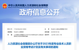 近日,人力資源社會保障部辦公廳印發(fā)《關(guān)于2023年度專業(yè)技術(shù)人員職業(yè)資格考試計劃及有關(guān)事項的通知》,公布了2023年度專業(yè)技術(shù)人員職業(yè)資格考試計劃。