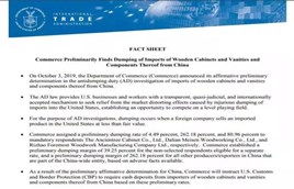 美國商務部上月初初步裁定中國原產木制櫥柜及浴室柜產品傾銷幅度最高達262.18%。初裁決定獲美國櫥柜聯盟(AKCA)擁護,但卻遭致美國櫥柜分銷商聯盟(ACCD)的強烈反對。該聯盟指美國商務部的做法對數萬人的工作造成影響,又稱美國櫥柜制造商面臨的困境“一部分是咎由自取”。