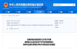 近日,住建部發布關于開展建筑施工企業安全生產許可證和建筑施工特種作業操作資格證書電子證照試運行的通知,自2022年10月1日起試行。